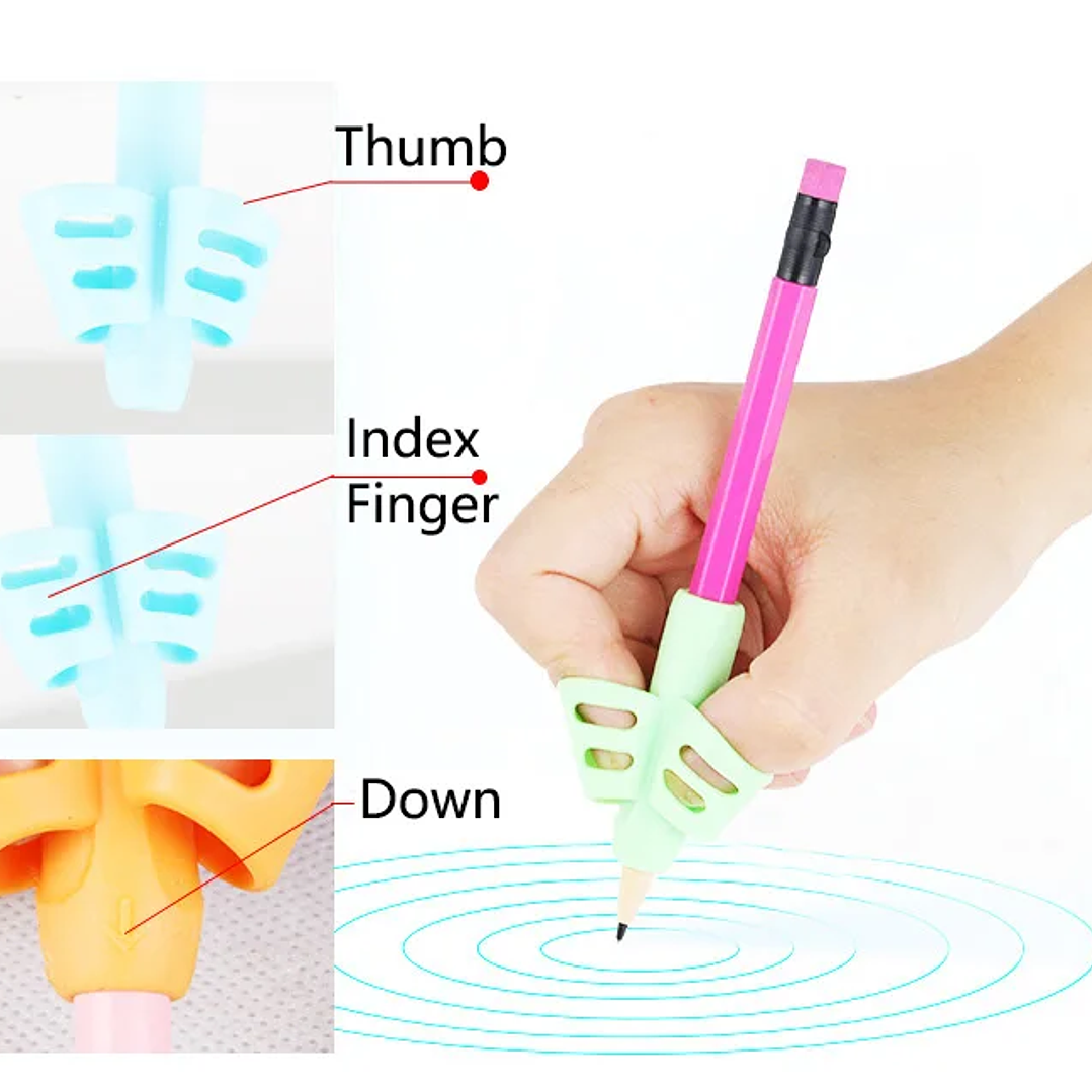 - Los agarres para lápices se pueden usar en casa, en la escuela, etc
